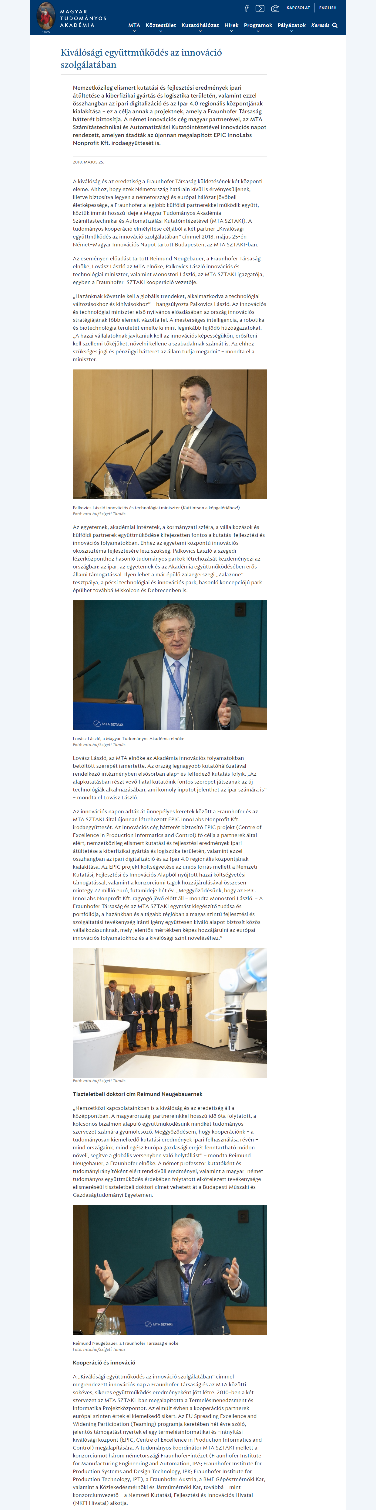 Nemzetközileg elismert kutatási és fejlesztési eredmények ipari átültetése a kiberfizikai gyártás és logisztika területén, valamint ezzel összhangban az ipari digitalizáció és az Ipar 4.0 regionális központjának kialakítása – ez a célja annak a projektnek, amely a Fraunhofer Társaság hátterét biztosítja. A német innovációs cég magyar partnerével, az MTA Számítástechnikai és Automatizálási Kutatóintézetével innovációs napot rendezett, amelyen átadták az újonnan megalapított EPIC InnoLabs Nonprofit Kft. irodaegyüttesét is.